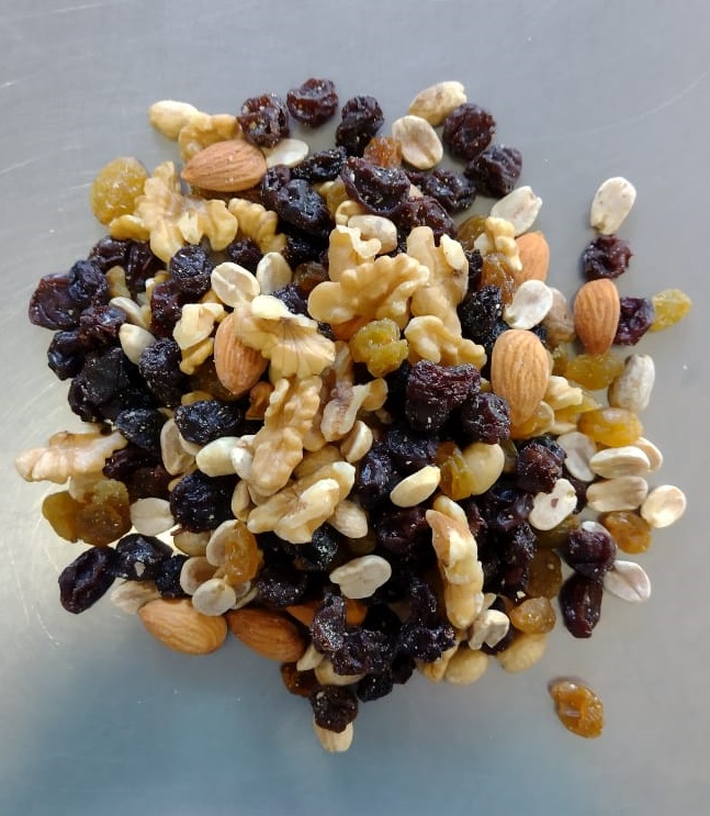 MIX BASICO : Maní, pasas de uva rubias (sin semilla), pasas de uva morochas (sin semilla), almendras y Nuez mariposa blanca común