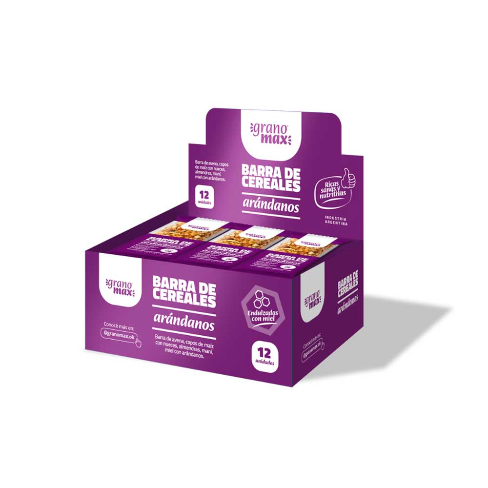 ARANDANOS: avena, copos de maíz, crispín de arroz, almendras, nueces, maní, arándano deshidratado, miel, extracto de arándano y vitamina E (antioxidante natural).