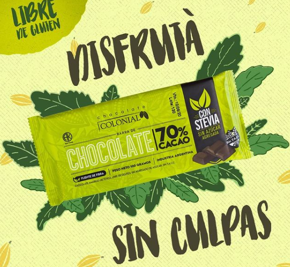 Tableta de Chocolate 70% Cacao Amargo Endulzado Con Stevia